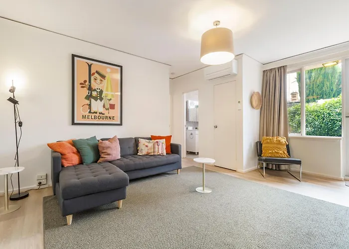 Diese 50 m² großen Apartments liegt in etwa 2 km Entfernung vom Royal Botanic Gardens Melbourne. Das Australian Centre for the Moving Image ist in einer Entfernung von circa 10 Fahrminuten vom Apartment gelegen.